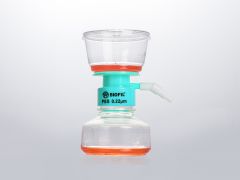 真空式过滤器利用真空泵提供压力差,用于组织培养液和其他实验室流体溶液的大量过滤,样品处理量可达数升,过滤后的样品可直接以无菌的收集瓶保存,是细胞培养基、缓冲剂和试剂无菌过滤的理想用品。整套真空过滤器包含上杯盖,上杯,连接器、过滤膜及接收瓶。