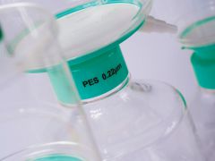 真空式过滤器利用真空泵提供压力差,用于组织培养液和其他实验室流体溶液的大量过滤,样品处理量可达数升,过滤后的样品可直接以无菌的收集瓶保存,是细胞培养基、缓冲剂和试剂无菌过滤的理想用品。整套真空过滤器包含上杯盖,上杯,连接器、过滤膜及接收瓶。