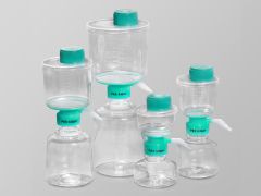 真空式过滤器利用真空泵提供压力差,用于组织培养液和其他实验室流体溶液的大量过滤,样品处理量可达数升,过滤后的样品可直接以无菌的收集瓶保存,是细胞培养基、缓冲剂和试剂无菌过滤的理想用品。整套真空过滤器包含上杯盖,上杯,连接器、过滤膜及接收瓶。